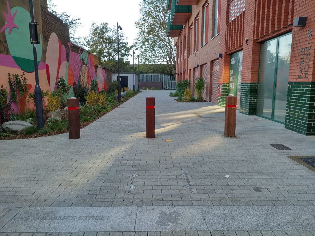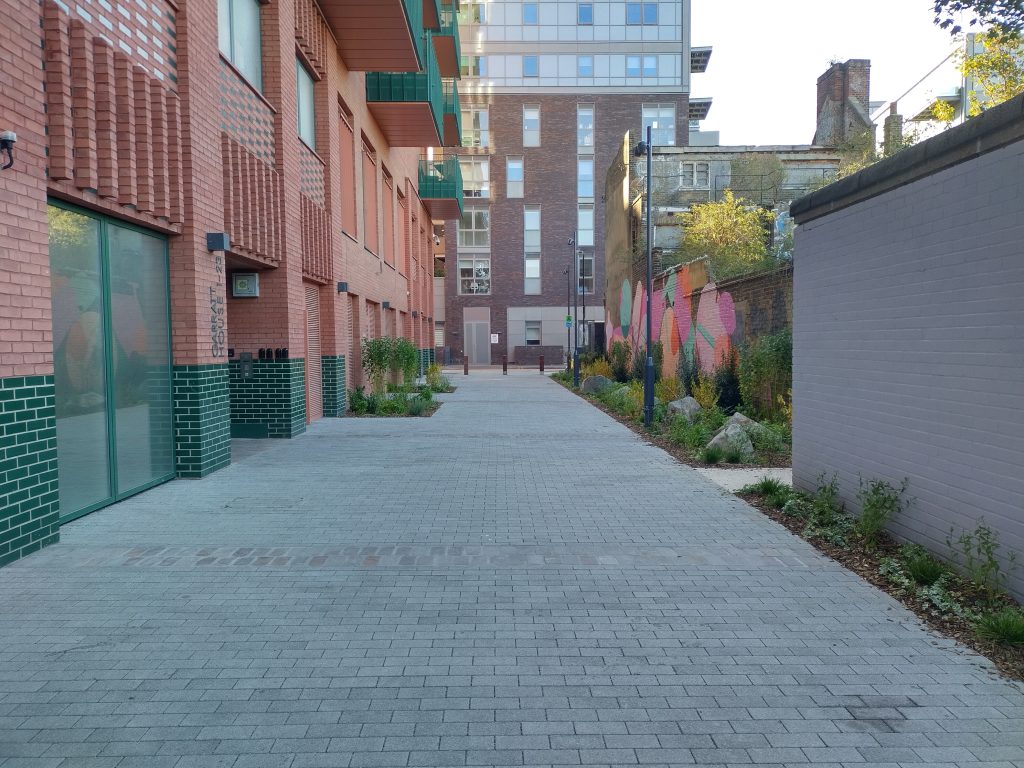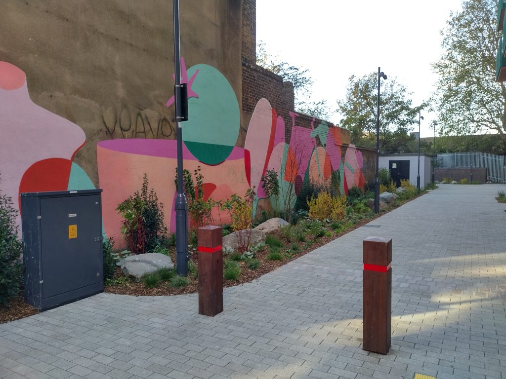 The conduit between the two areas is known as the St James underpass, which is right next to red bricked modern apartments called Jazz Yard. This section often felt like a bit of a no-mans-land, and lack of greenery and lighting would deter some commuters from what is otherwise an interesting and practical cut-through. However, this has now changed. Waltham Forest Council have just completed improvements with new greening around Jazz Yard, improved lighting in St James Underpass, and new paving. This coupled with the mural which was installed last year, makes the route far more accessible and pleasant.